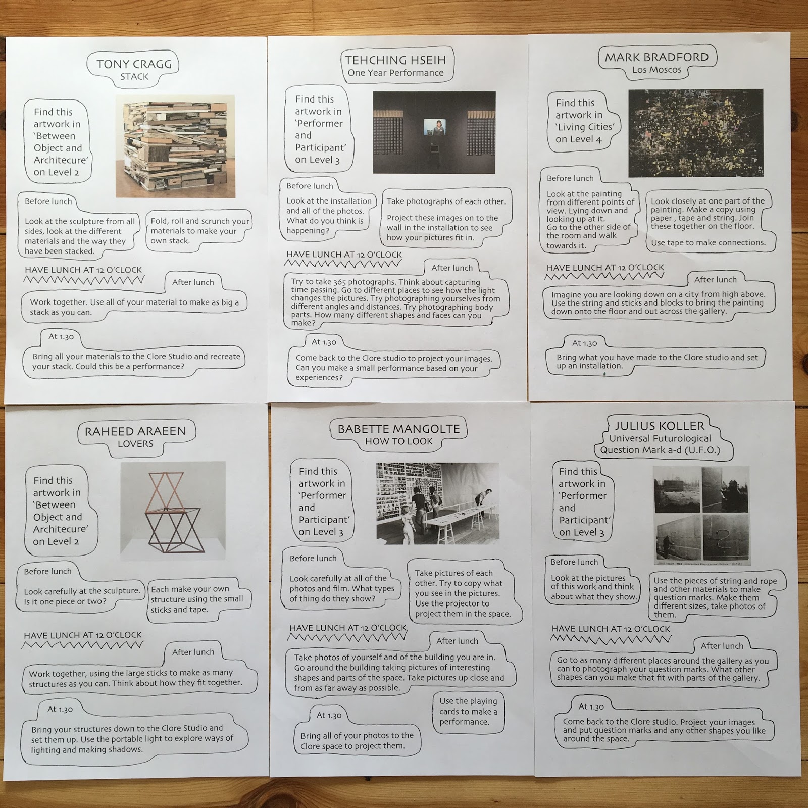 An experimental workshop at Tate Modern where children with learning difficulties worked in groups with students from Kingston . Each group was given a workshop and a set of materials, the idea being to make work in the gallery beside the artworks and to explore ideas and materials together. What seemed most important was that the activities served as an excuse to spend time together to spend time in the gallery and play. This is part of a year-long research project aimed at developing Tate Schools and Teachers SEND offer. It will also be used to develop ideas for the Tate Summer School later this year.
